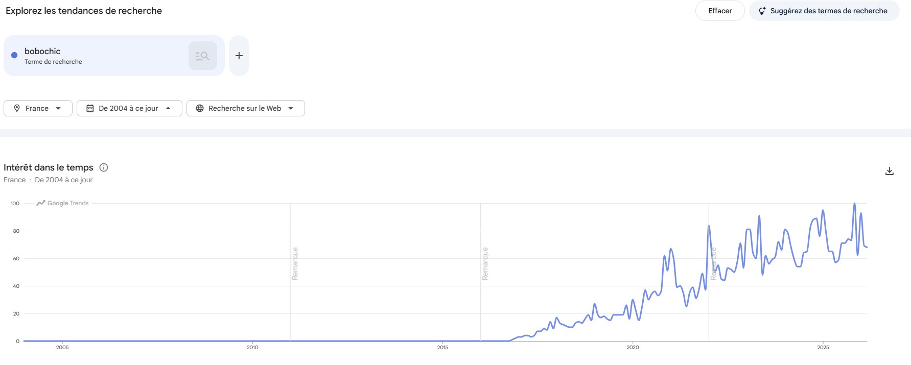 évolution du nombre de recherche concernant la marque Bobochic sur Google.